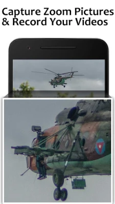 The app is an image zooming tool with real-time image processing. Use this application as a real telescope. Shoot photos and videos both daytime and nighttime.