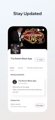 **4. News and Updates:** Stay in the loop with the latest news and events related to Dennis Bono. Whether it's a new album release, upcoming live performances, or behind-the-scenes insights, the app ensures that users are always informed about what's happening in the world of Dennis Bono.