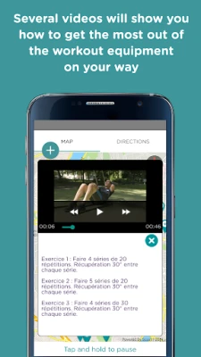 Exercises to strengthen your muscles are included along the circuit and are organized according to three levels of difficulty. These workouts use urban furniture mainly but also rely on the street workout gym equipment installed in public areas. Didactic videos are available when you approach a station.