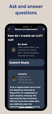 - Ask and get advice from users on the platform to help you grow financially and professionally in business