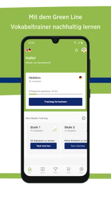 Du lernst Englisch mit Green Line von Klett? Dann hol dir unbedingt den Green Line Vokabeltrainer auf dein Handy. Mit dieser App kannst du überall deine Vokabeln trainieren – auch komplett offline. Durch sein wissenschaftlich fundiertes 7-Stufen-Modell lernst du deine Vokabeln häppchenweise und über einen längeren Zeitraum verteilt, bis sie dir garantiert im Gedächtnis haften bleiben. Dabei erinnert dich die App automatisch durch einen intelligenten Algorithmus, wann Vokabeln zur Wiederholung bereitstehen.