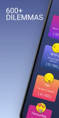 You and your friends will discuss outrageous hypothetical situations, moral dilemmas, provocative questions and make tough decisions. The game will save you from boring everyday conversations and situations when you get together in a group and the dialogue doesn’t go well.