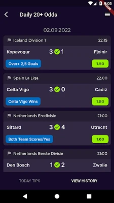 Every betting predictions of this app can be a result of statistical analysis from more over 250 international football leagues and tournaments around the world.