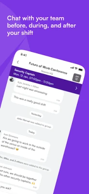 * Chat with your supervisors and team members to collaborate before, during, and after your shift.