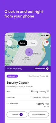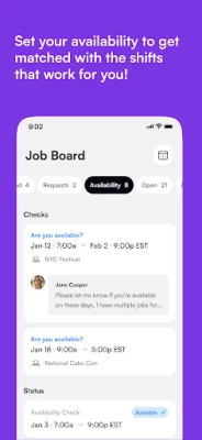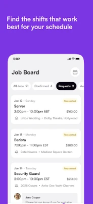 Everything you need to manage your work schedule — accept job requests, clock in to your shifts, and get paid for your hours.