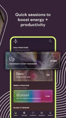 Consider this your new daily ritual to energize and start your day, improve focus + performance, decompress after work, wind down for a deep sleep, or release negative emotions with short + effective exercises when you need them most.