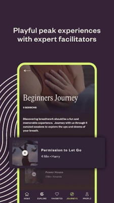 Our app features daily UP and DOWN sessions to keep your practice feeling fresh. Spend less time deciding and more time breathing. Our curated weekly practice offers a longer haul, transformative journey designed to give you a complete release + reset from the stressors of modern living.