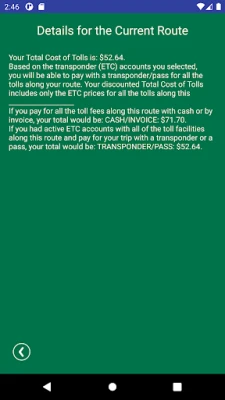 Ever wish Google Maps, WAZE or MapQuest displayed how much tolls cost? Now you can quickly find out using the Tollsmart Toll Calculator app. Tollsmart is the only Android app that calculates toll costs across all tunnels, bridges and toll roads* in the US & Canada, and includes discounts from all ETC (transponder) agencies such as E-ZPass, SunPass, TxTag and FasTrak.