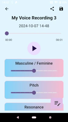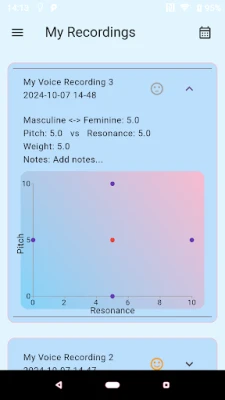 A tool designed for transgender people to aid with voice therapy and satisfaction. It allows you to record your voice, and add your own ratings for various categories such as: