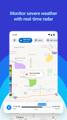 Multiple weather layers and future radar maps to track thunderstorms, typhoons, hurricanes, rainfall, snowfall and more.